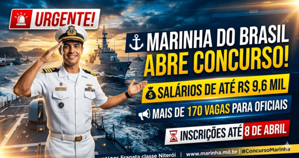 Marinha do Brasil abre mais de 170 vagas para Oficiais com salários de até R$ 9,6 mil Concurso da Marinha do Brasil oferece...