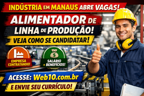 Porraifran14/04/2026📢 Nova oportunidade de emprego em Manaus Uma indústria em Manaus anunciou novas vagas de emprego para Alimentador de Linha de Produção, trazendo...