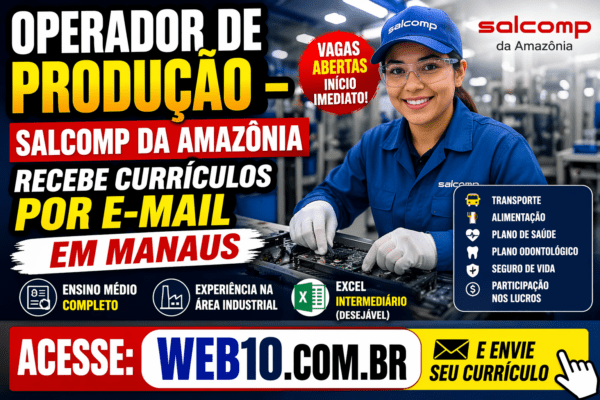 Porraifran18/04/2026Operador de Produção – Salcomp da Amazônia Recebe Currículos por E-mail em Manaus A Salcomp da Amazônia, empresa multinacional instalada no Polo Industrial...