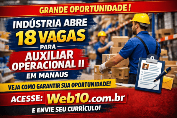 Porraifran15/04/2026📢 Oportunidade de emprego em Manaus: 18 vagas abertas Uma indústria está com 18 vagas para Auxiliar Operacional II em Manaus, trazendo uma...