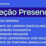 As funções incluem desde serviços gerais até cargos mais técnicos, como pedreiro e jardineiro. Veja abaixo os detalhes de cada vaga, os requisitos e como enviar o currículo.