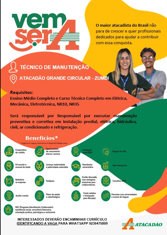 O web10.com.br informa que as empresas são inteiramente responsáveis pelos critérios de seleção para as vagas, assim como sobre as exigências para a ocupação dos postos de trabalho. Alertamos, entretanto, que processos de seleção para vagas de emprego são totalmente gratuitos e não exigem cobrança de tarifas, pagamentos por exames ou por cursos supostamente necessários para as vagas.