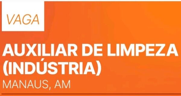 Porraifran30/08/2024Oportunidade para Manaus Vaga: Auxiliar de Limpeza – Indústria Atividades: Realiza atividades de limpeza e higienização, utilizando produtos e utensílios, assim como, maquinas...