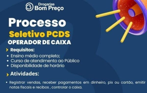 Porraifran15/05/2025Drogarias Bom Preço está contratando Operador de Caixa PCD com ensino médio completo. Saiba como se candidatar e confira todos os benefícios...