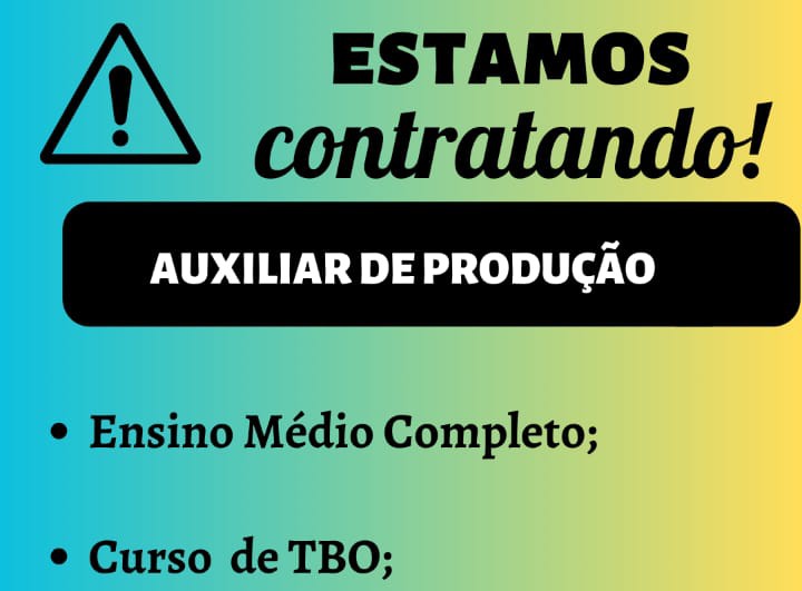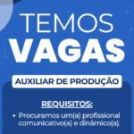 - Vaga para Auxiliar de Produção com início imediato – Salário de R$ 1.518,00