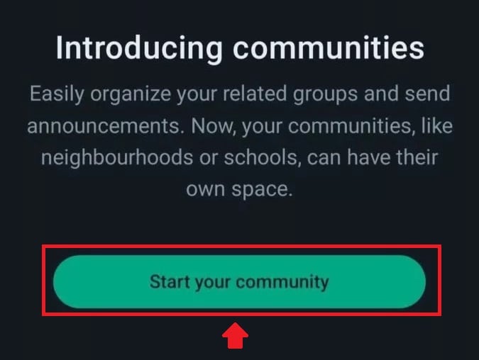 5 – Aperte o ícone de seleção para criar sua Comunidade