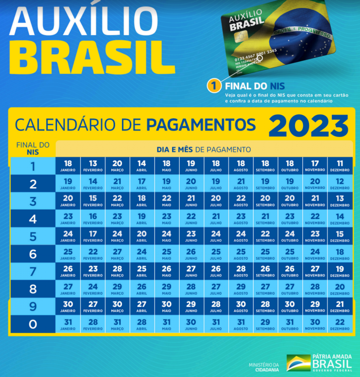 O calendário Auxílio Brasil 2023 já foi liberado pelo Ministério da Cidadania! Confira: