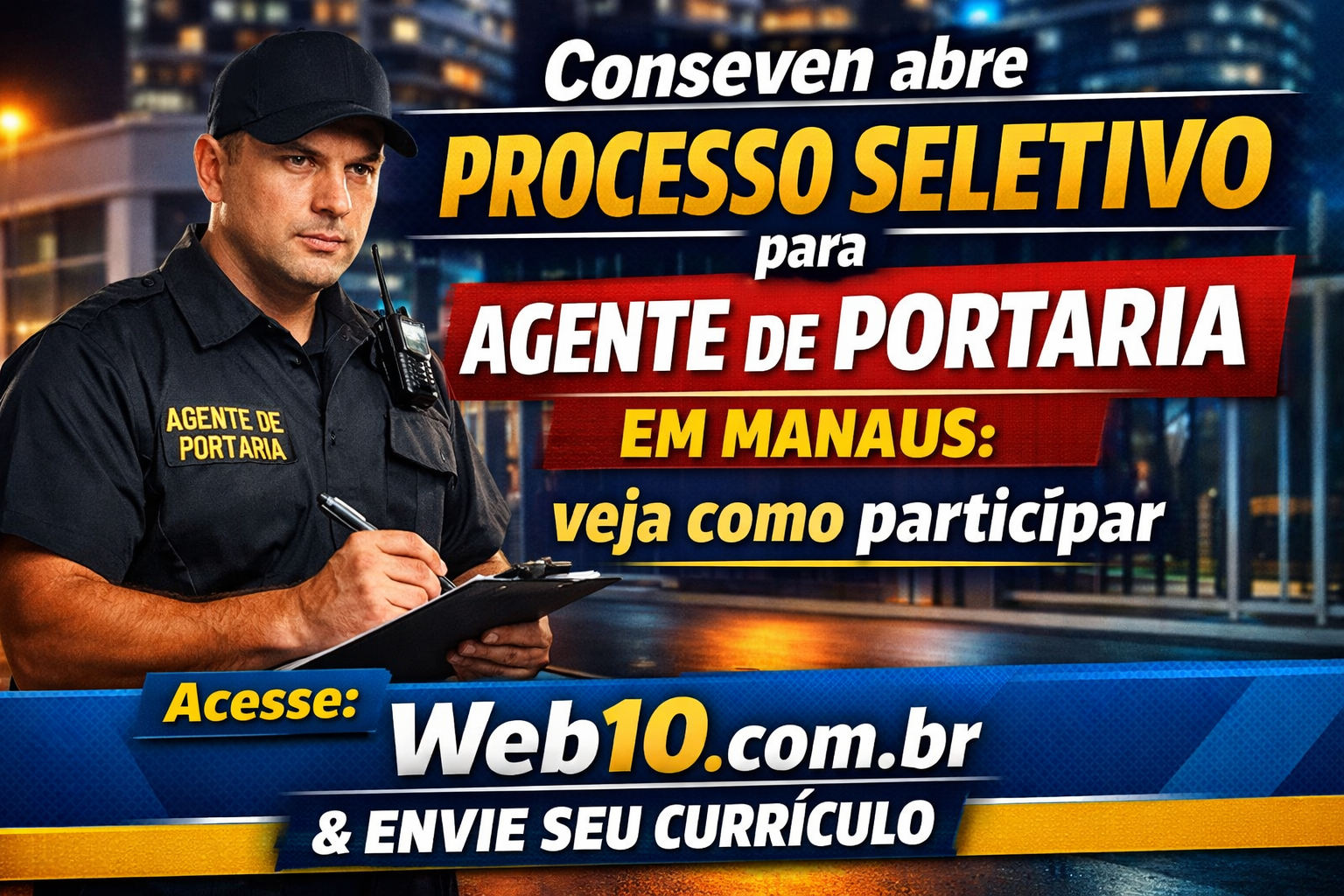 A empresa Conseven está com processo seletivo aberto para Agente de Portaria em Manaus, trazendo uma excelente oportunidade para quem busca entrar ou se recolocar no mercado de trabalho. Essa vaga é voltada principalmente para profissionais que já possuem alguma experiência na área e desejam estabilidade.