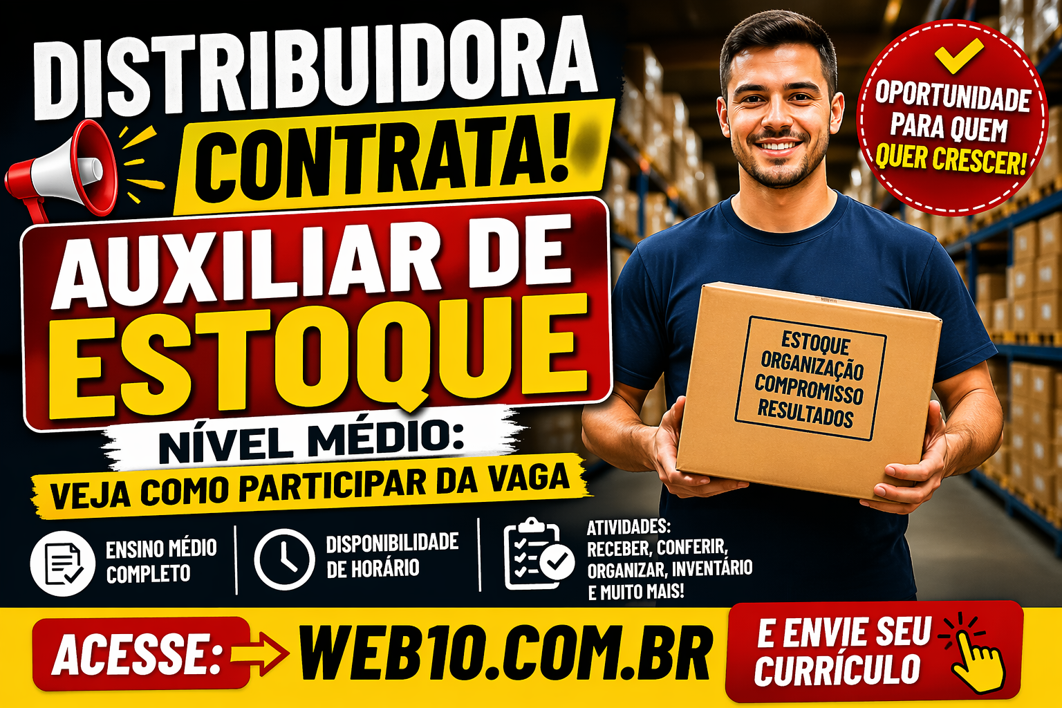 Uma distribuidora está com oportunidade aberta para o cargo de auxiliar de estoque em Manaus, voltada para candidatos com ensino médio completo e disponibilidade de horário. Essa é uma excelente chance para quem deseja entrar ou crescer na área de logística, mesmo com pouca experiência.