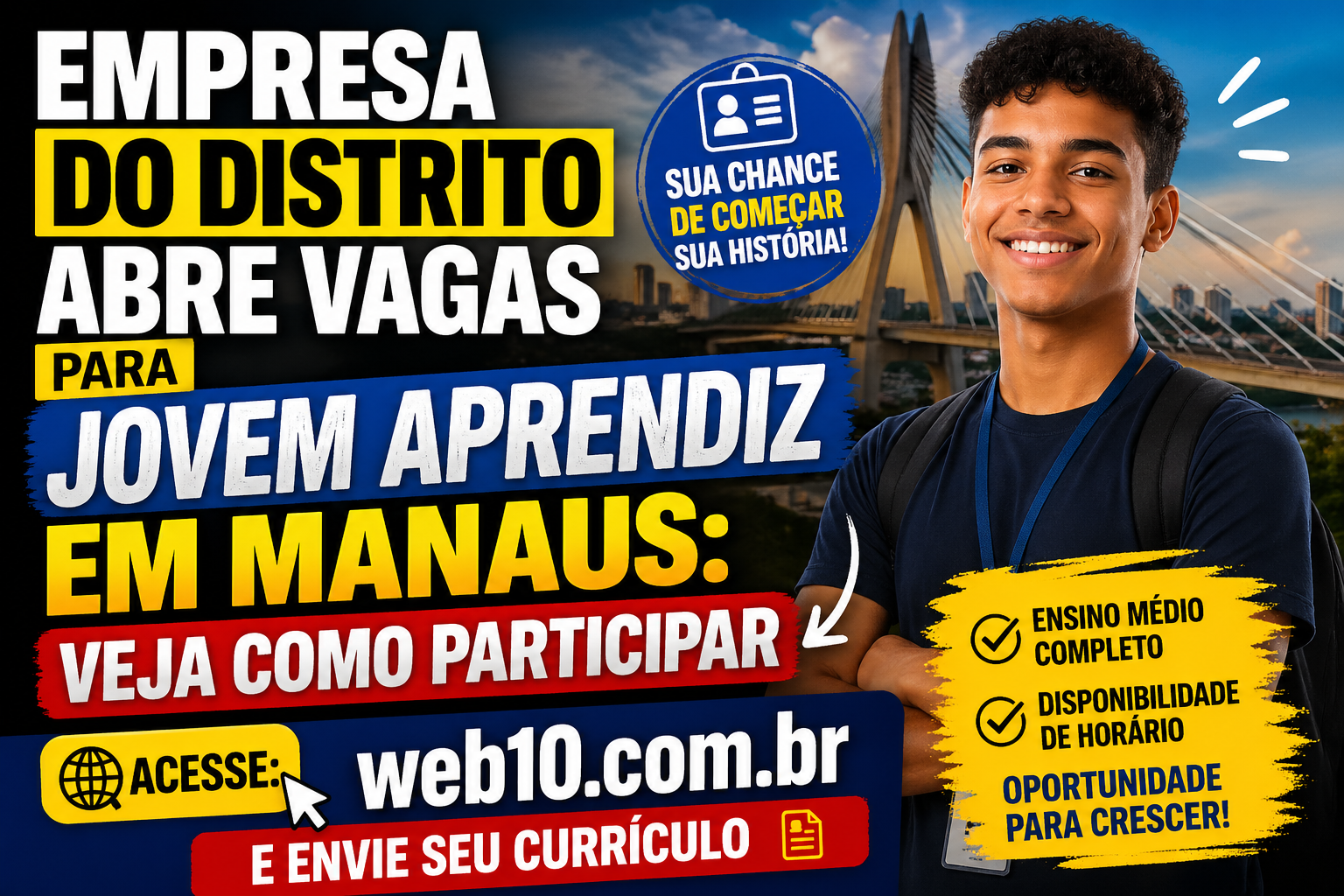 Atualmente, uma empresa do Distrito está com vagas abertas para Jovem Aprendiz na cidade de Manaus – AM. Essa pode ser uma excelente chance para quem já concluiu o ensino médio e deseja crescer profissionalmente. Além disso, o programa Jovem Aprendiz é conhecido por oferecer aprendizado prático junto com orientação dentro da empresa.