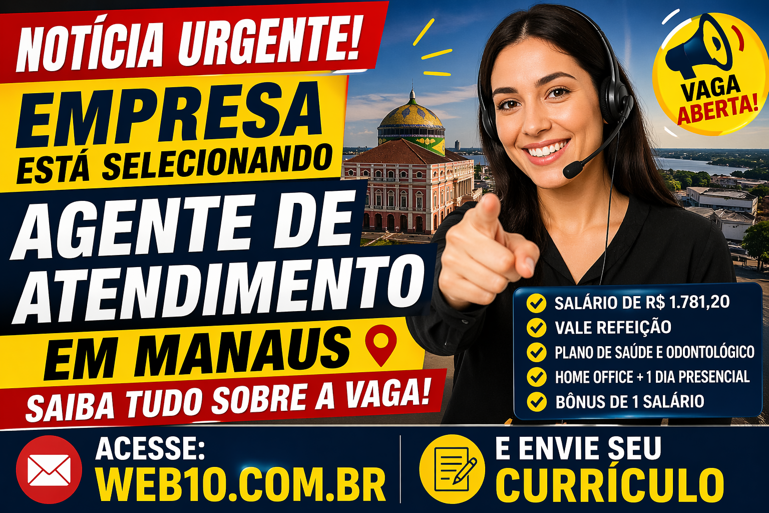 📌 Oportunidade de emprego em Manaus: Agente de Atendimento