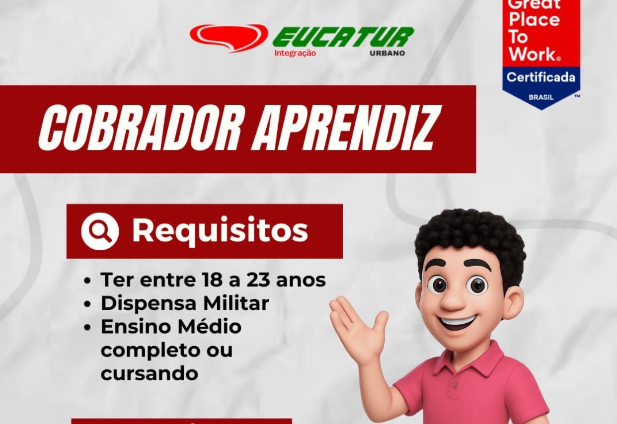 A vaga de Cobrador Aprendiz EUCATUR Urbano é uma excelente oportunidade para jovens entre 18 e 23 anos que desejam começar a trabalhar.