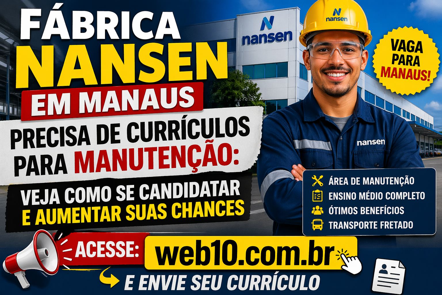 A busca por emprego em Manaus continua movimentando o Polo Industrial, e, neste cenário, surge uma excelente notícia para quem deseja trabalhar na área técnica. A Nansen Manaus vagas está recebendo currículos para o cargo de Auxiliar de Manutenção, oferecendo benefícios atrativos e possibilidade de crescimento.