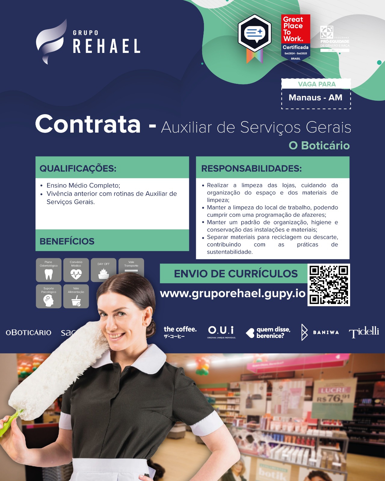 Venha fazer parte do nosso time, se cadastre pelo link da vaga: https://gruporehael.gupy.io/jobs/8234857