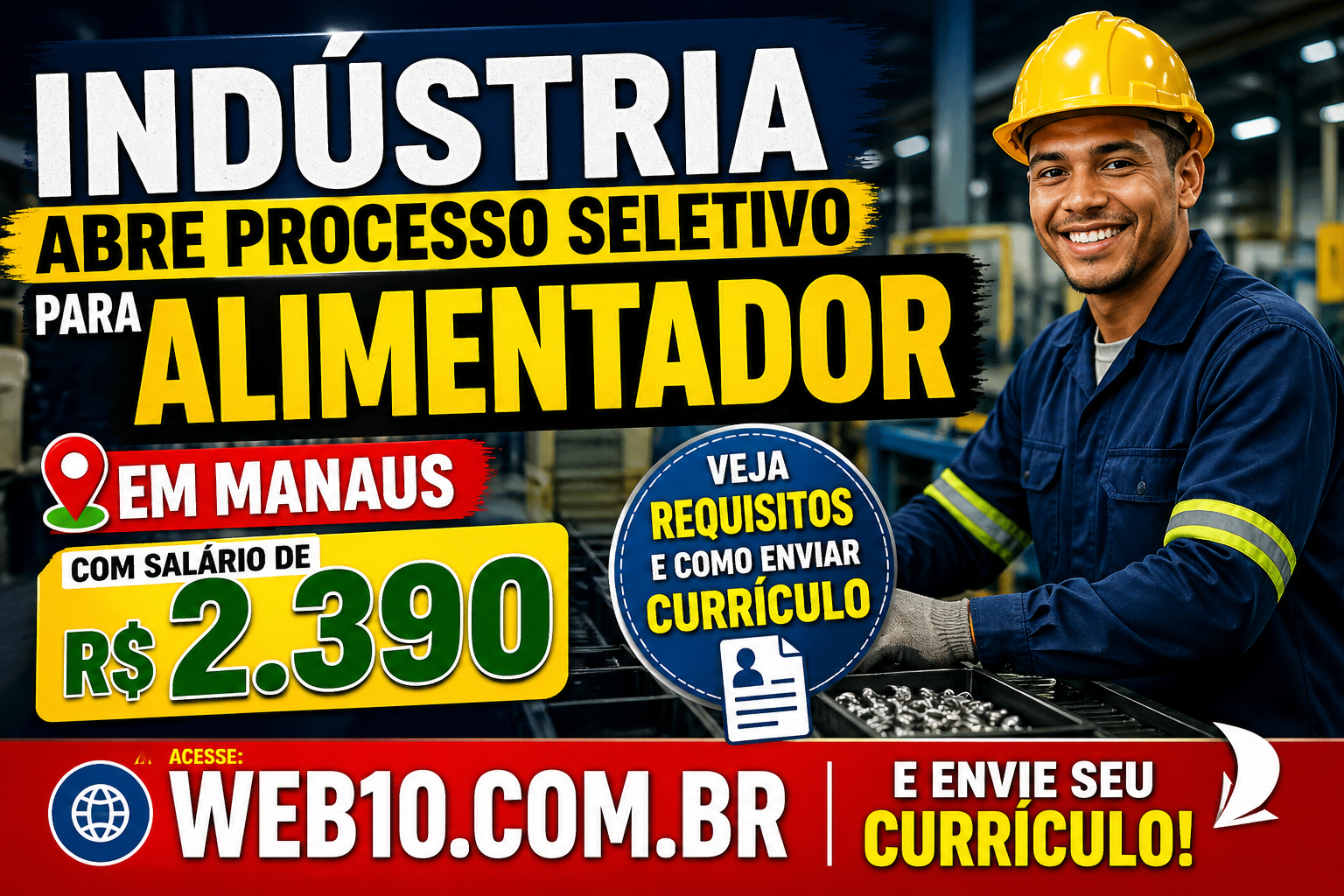 Uma vaga de emprego em Manaus está chamando atenção de quem busca oportunidade na área industrial. Uma indústria abriu processo seletivo para Alimentador, oferecendo salário de R$ 2.390,00 para profissionais que desejam crescer no mercado de trabalho.