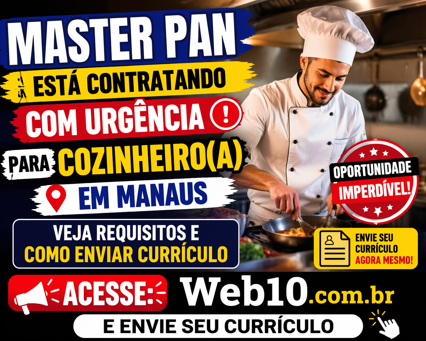 Quem está procurando vaga de emprego em Manaus pode aproveitar uma nova oportunidade anunciada pela Master Pan, empresa conhecida no setor alimentício. A empresa informou que está contratando com urgência para a função de Cozinheiro(a), buscando profissionais comprometidos, organizados e com experiência na área.
