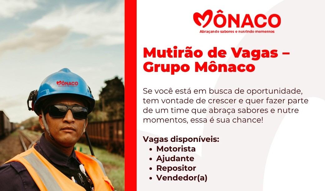 O Mutirão de Vagas do Grupo Mônaco chega como uma grande chance para quem está procurando emprego e deseja começar rapidamente. Essa ação foi criada para ajudar pessoas que querem trabalhar e construir uma vida melhor, oferecendo vagas em diferentes áreas. Por isso, o mutirão se destaca por ser simples, direto e acessível, permitindo que mais candidatos tenham a chance de participar sem dificuldades. Além disso, as vagas foram pensadas para quem gosta de aprender no dia a dia e deseja fazer parte de um time que valoriza esforço, compromisso e boa convivência.