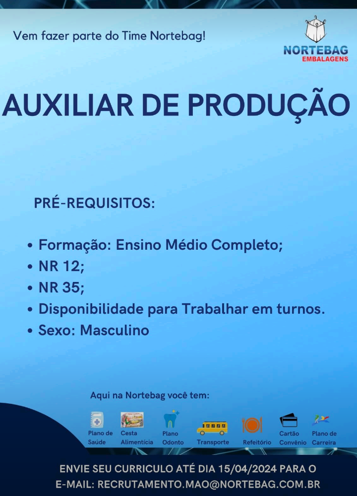 Olá, gostaríamos de dar algumas informações: Somos apenas disseminadores de informações de vagas. Não fazemos recrutamento nem seleção para as vagas. Os candidatos deverão enviar o currículo para empresa ou Consultorias de RH. Só envie seu currículo se tiver dentro do perfil. Dicas importantes: Um bom currículo garante a atenção do empregador. checar seu currículo antes de enviar e tenha certeza de que você está fazendo da melhor maneira. Referências são cruciais para a obtenção de uma vaga.