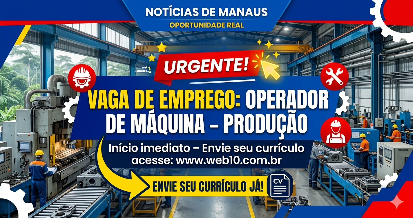 A vaga disponível é para Operador de Máquina – Produção em Manaus/AM. O candidato selecionado será responsável por operar máquinas industriais, acompanhar o processo de produção e garantir que os produtos estejam dentro dos padrões de qualidade.