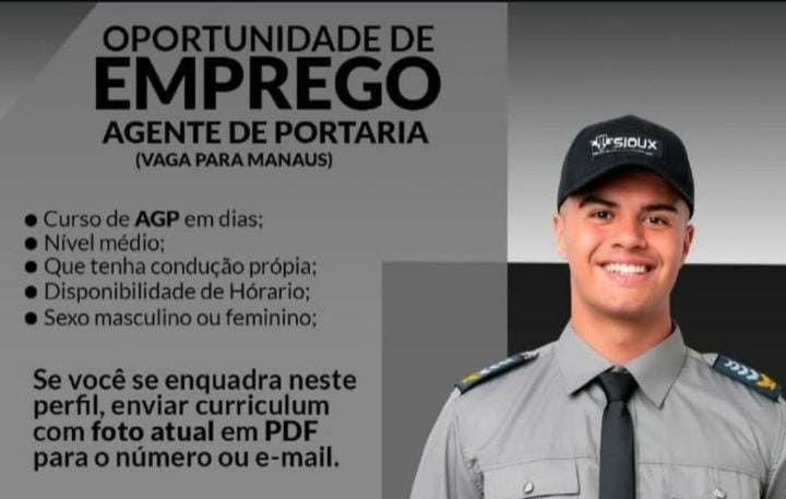 A vaga de Agente de Portaria em Manaus, oferecida pela Sioux, é uma chance concreta de conquistar um emprego digno e estável. Se você tem o curso de AGP em dias, ensino médio completo, condução própria e disponibilidade de horário, não perca tempo.