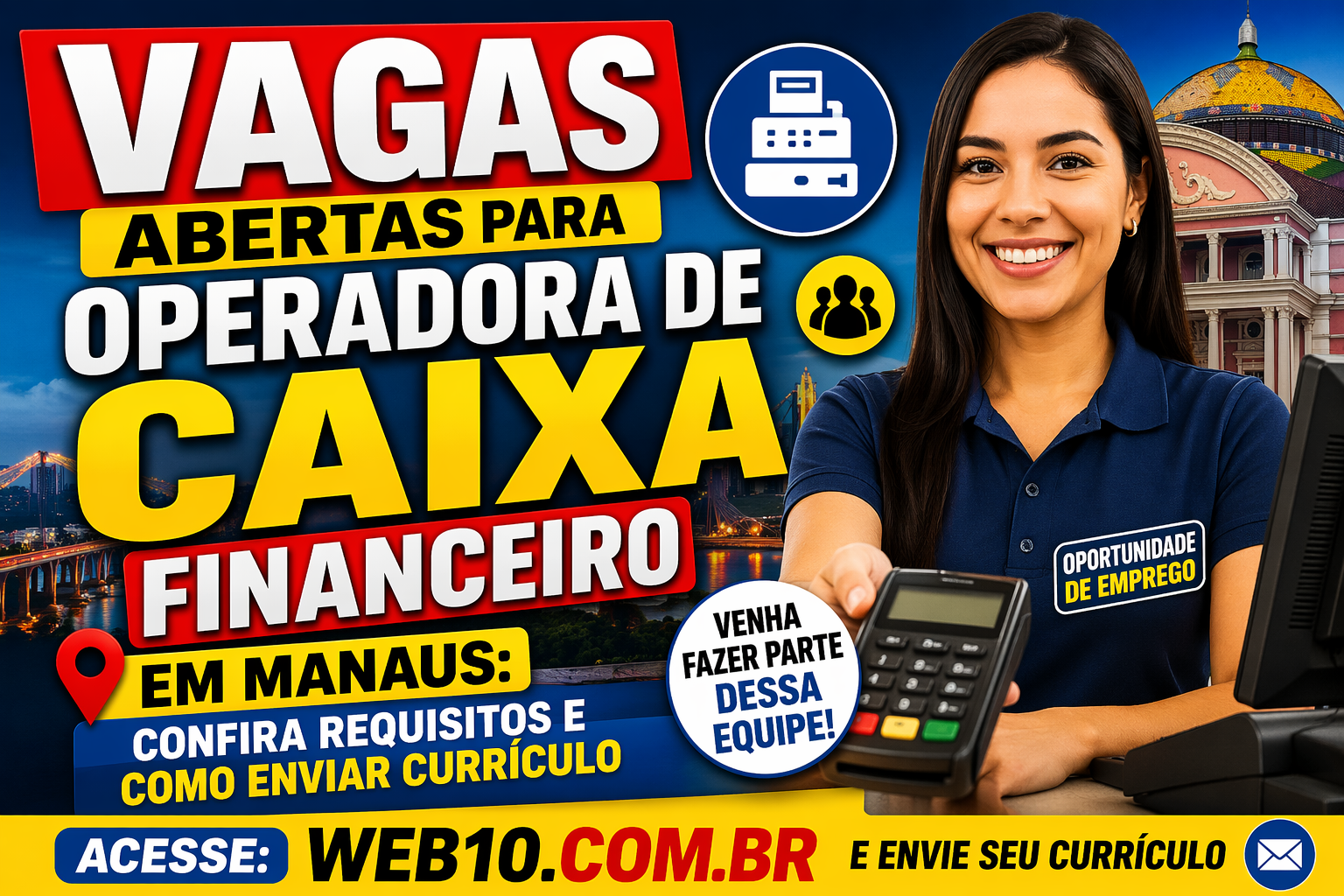 Para concorrer à vaga para Operadora de Caixa Financeiro em Manaus, é necessário atender alguns requisitos informados pela empresa.