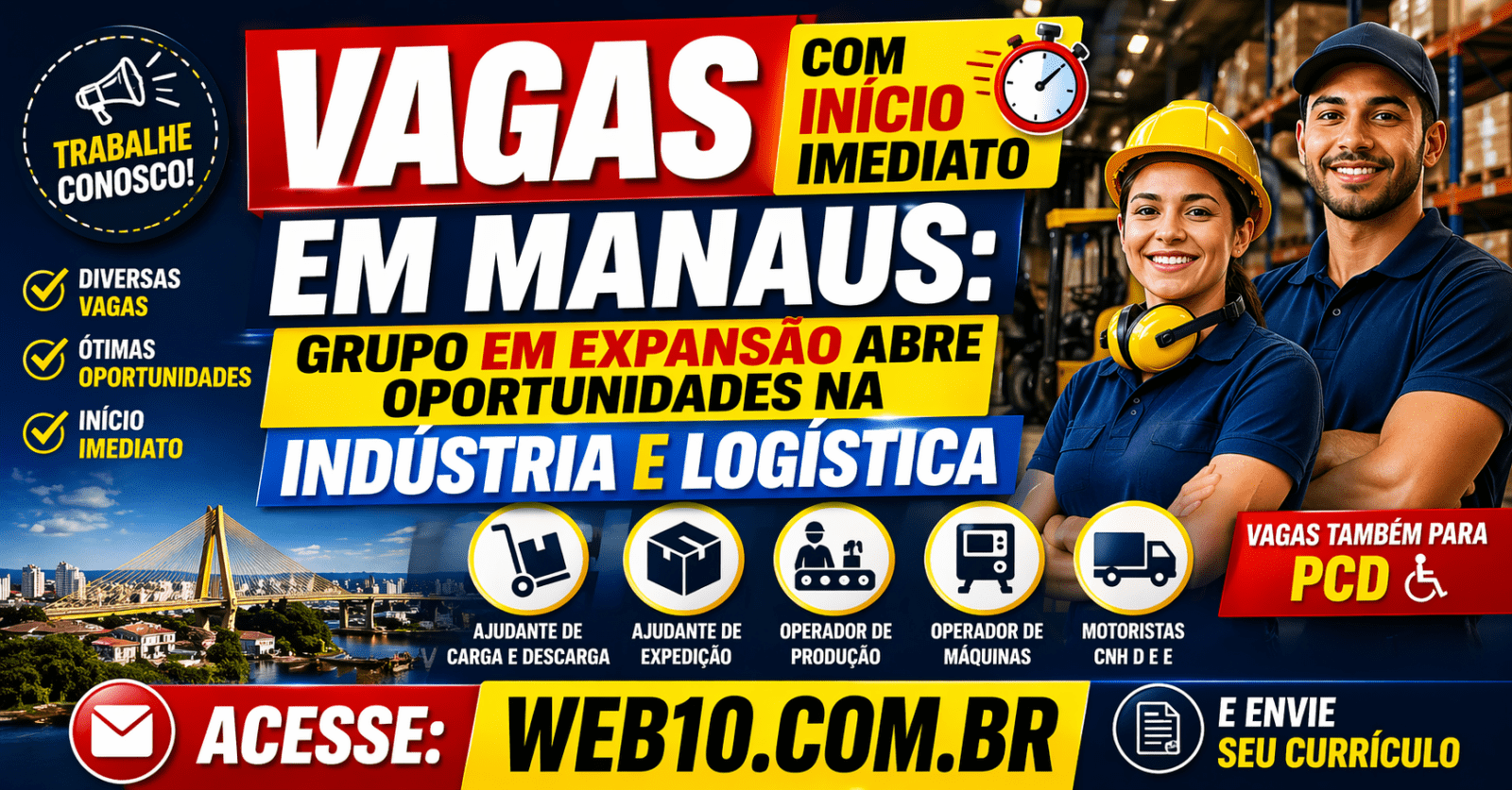 A busca por vagas em Manaus continua sendo uma realidade para muitas pessoas que desejam entrar ou voltar ao mercado de trabalho. Pensando nisso, um grupo em fase de crescimento anunciou novas oportunidades com início imediato, principalmente nas áreas de indústria e logística. Essa notícia traz esperança para quem precisa de uma chance rápida de emprego.