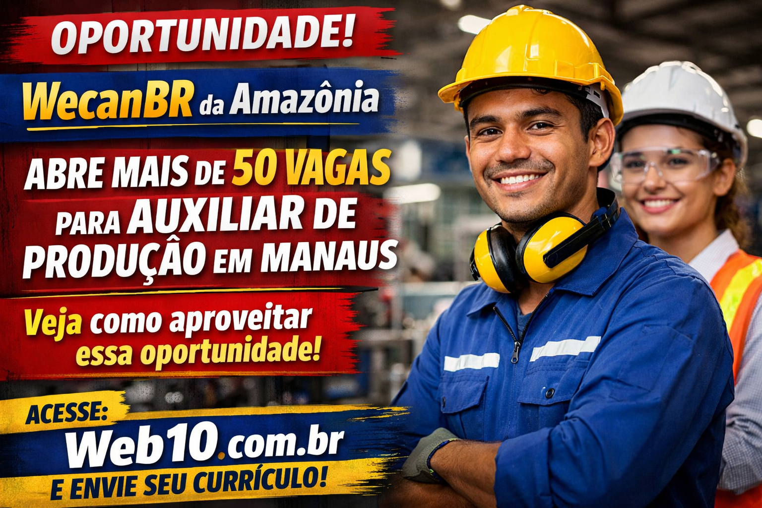 Uma excelente oportunidade está aberta para quem busca emprego em Manaus e deseja entrar no setor industrial. A empresa WeCanBr Recursos Humanos está conduzindo o processo seletivo para mais de 50 vagas de Auxiliar de Produção na cidade de Manaus.